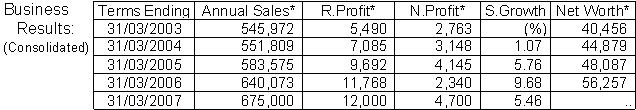 Sept/2006: sales Yen 319,000 million, recurring profit Yen 2,640 million, net
