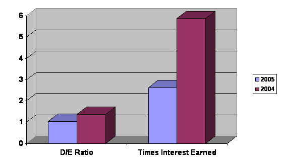 D/E Ratio was decreased from 1.37 to 1.03, show the company had fund from Loan more than fund from Equity, investment risked of the company is medium and Times Interest Earned was decreased from 5.87 to 2.63, capacity to pay interest paid was good.