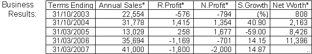 First Half results ending Sept/2006: sales Yen 18,914 million (up