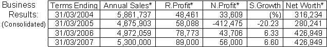 Half-yearly results ending Sept 2006:
