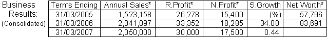 net profit at Yen 17,500 million, respectively, on a slight rise in turnover,