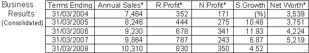 (Apr/Jun/2007 results): Sales Yen 2,549 million (up 13.3%), operating