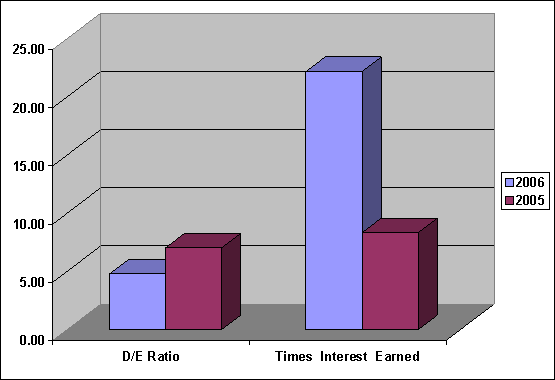 D/E Ratio was decreased from 7.02 to 4.77, show the company had fund from Loan more than fund from Equity, investment risked of the company is high, Times Interest Earned was increased from 8.33 to 22.18, capacity to pay interest paid was good.
