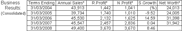 (or estimated) figures for 31/03/2008 fiscal term