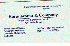 uyana, Rajasinghe Mawatha, Udumulla, Mulleriyawa. Tel. No: (00 94 11) 257 8905 Fax No: (00 94 11) 257 8905 Mobile: (00 94 77) 651 5525 - Mr.Chaminda Karunaratna E-mail: karunacom@gmail.com |