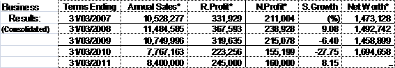 Forecast (or estimated) figures for 31/03/2011 fiscal term