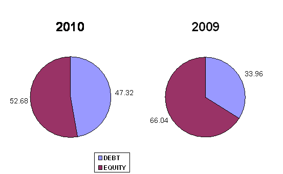through debt. The company's figure is 0.47 less than 0.5, most of the company's