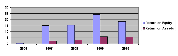 Return on assets stood at 5.43 per cent (FY09: 6.02 per cent). The