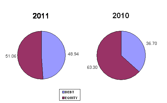through debt. The company's figure is 0.49 less than 0.5, most of the company's
