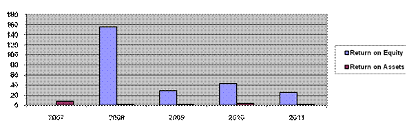 Return on assets stood at 2.08 per cent (FY10: 3.88 per cent). The return