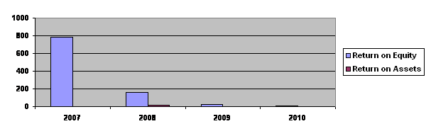 Return on assets stood at 0.45 per cent (FY09: 3.12 per cent). The
