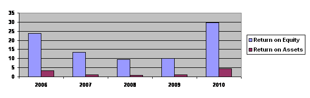 Return on assets stood at 4.46 per cent (FY09: 1.07 per cent). The