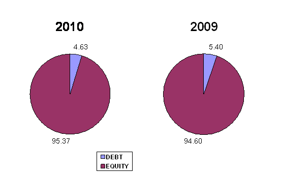 through debt. The company's figure is 0.05 less than 0.5, most of the company's