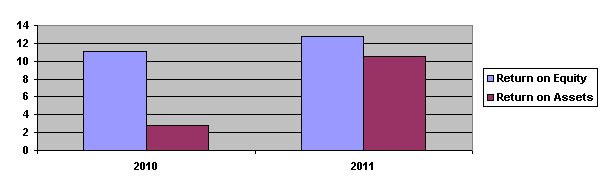 Return on assets stood at 10.54 per cent (FY10: 2.83 per cent). The