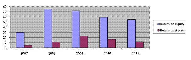 Return on assets stood at 11.48 per cent (FY10: 16.71 per cent). The