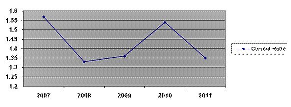 Current ratio stood at 1.35 times in FY11