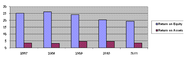 Return on assets stood at 3.53 per cent (FY10: 4.61 per cent). The return