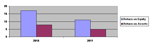 Return on assets stood at 4.92 per cent (FY10: 7.79 per cent). The
