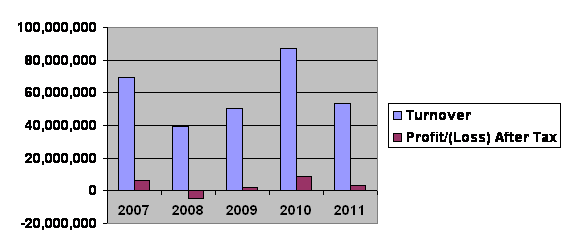 Total assets turnover ratio logged at 0.74 times in FY11 (FY10: 1.15