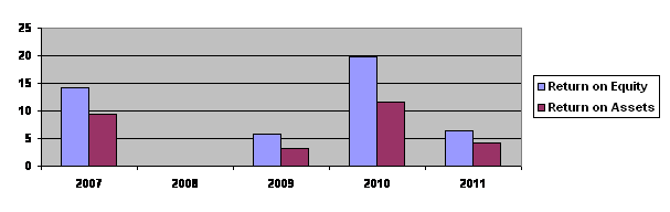 Return on assets stood at 4.14 per cent (FY10: 11.69 per cent). The
