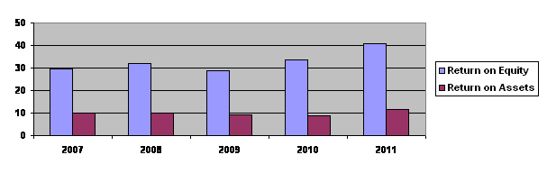 Return on assets stood at 11.79 per cent (FY10: 8.80 per