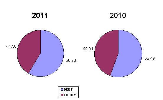 through debt. The company's figure is 0.59 greater than 0.5, most of the