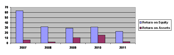 Return on assets stood at 2.77 per cent (FY10: 15.44 per cent). The