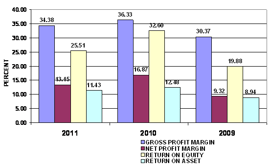 2011 and 2010 respectively. This ratio measures the efficiency of the company