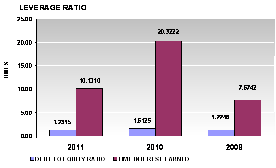 times in 2011 and 2010 respectively. This ratio is determined by dividing total