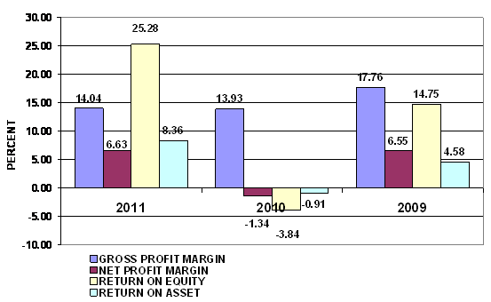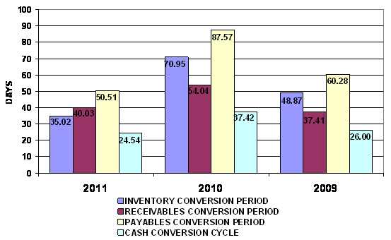 2011 and 2010 respectively. This ratio measures the efficiency of the company