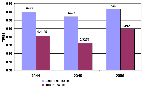 times in 2011 and 2010 respectively. This ratio is determined by dividing total