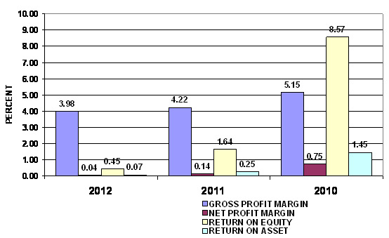 And Inventory turnover has decreased from 3.79 times in year 2011 to 3.09 times