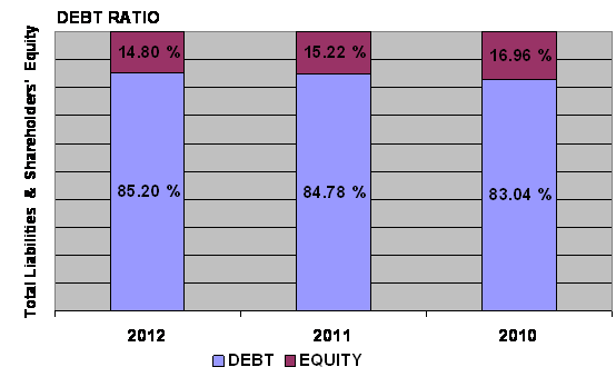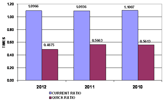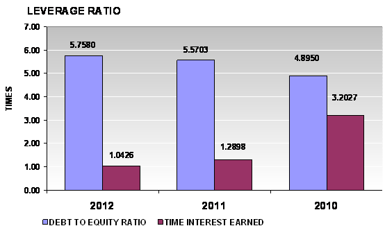 times in 2012 and 2011 respectively. This ratio is determined by dividing total