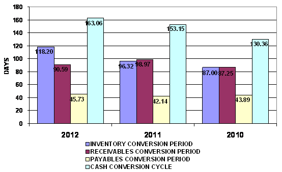 end of 2011 to 118 days at the end of 2012. This represents a negative trend.