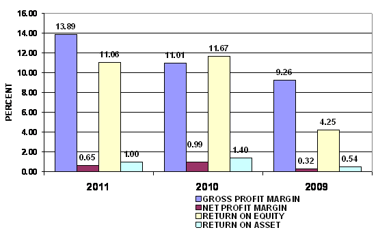 2011 and 2010 respectively. This ratio measures the efficiency of the company in