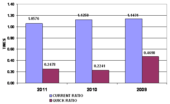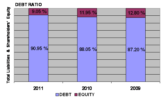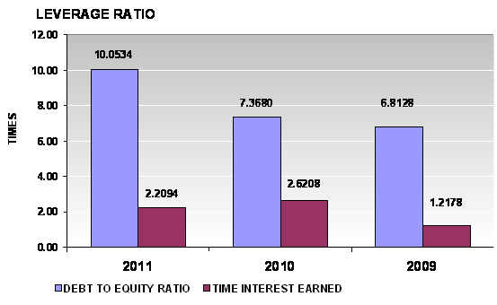 times in 2011 and 2010 respectively. This ratio is determined by dividing total