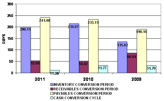 And Inventory turnover has increased from 1.71 times in year 2010 to 1.82 times