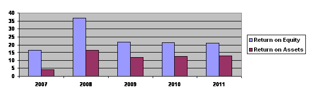 Return on assets stood at 12.65 per cent (FY10: 12.40 per cent). The