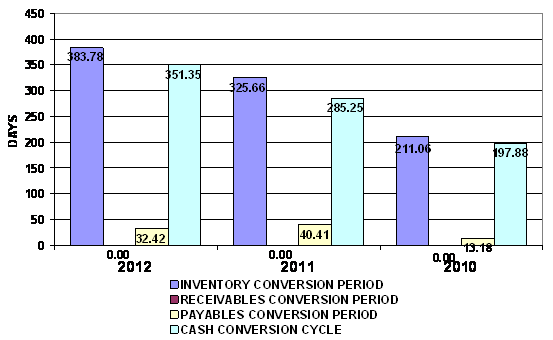 And Inventory turnover has decreased from 1.12 times in year 2011 to 0.95 times