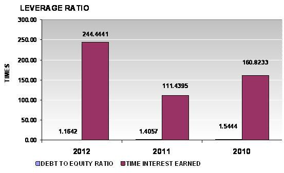 times in 2012 and 2011 respectively. This ratio is determined by dividing total