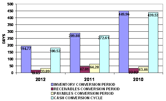 end of 2011 to 195 days at the end of 2012. This represents a positive trend.