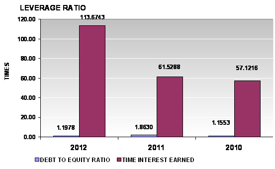 times in 2012 and 2011 respectively. This ratio is determined by dividing total