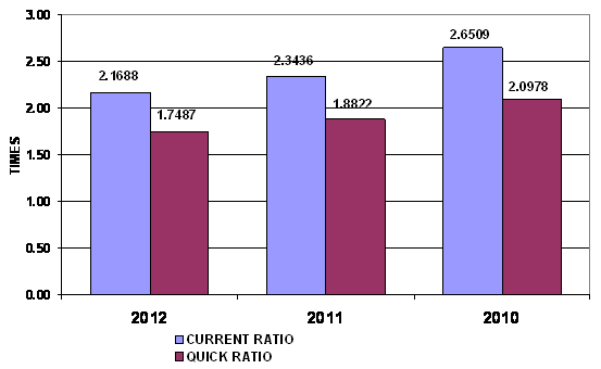 times in 2012 and 2011 respectively. This ratio is determined by dividing total