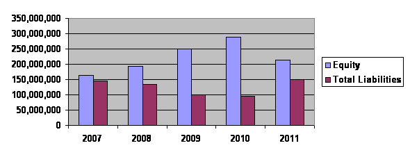 external debt for financing, relative to the shareholder's fund. A lower ratio