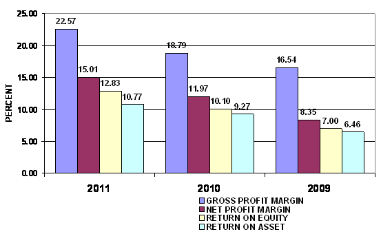 2011 and 2010 respectively. This ratio measures the efficiency of the company in