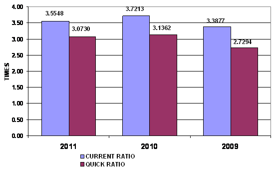 times in 2011 and 2010 respectively. This ratio is determined by dividing total