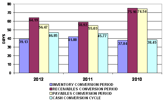 end of 2011 to 39 days at the end of 2012. This represents a positive trend.