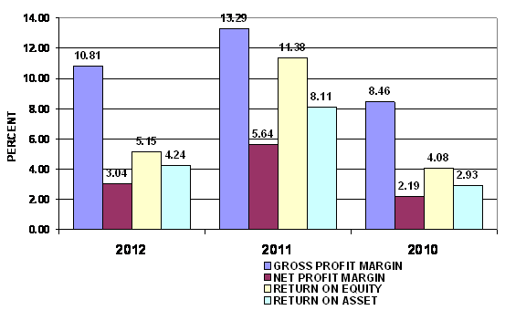2012 and 2011 respectively. This ratio measures the efficiency of the company