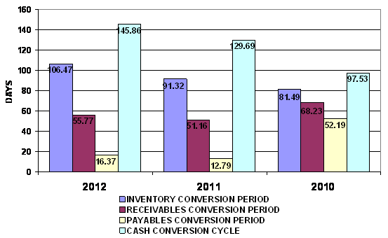 inventory turnover in days has increased from 91 days at the end of 2011 to 106