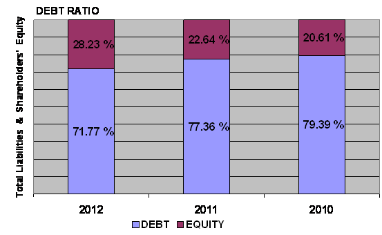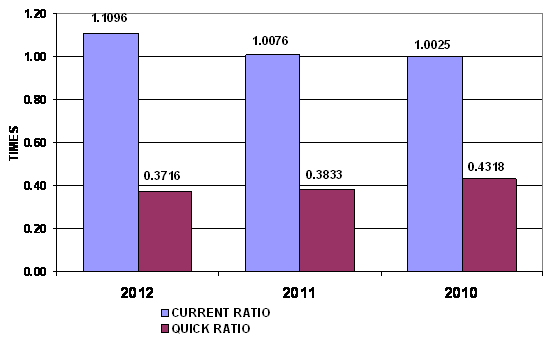 times in 2012 and 2011 respectively. This ratio is determined by dividing total